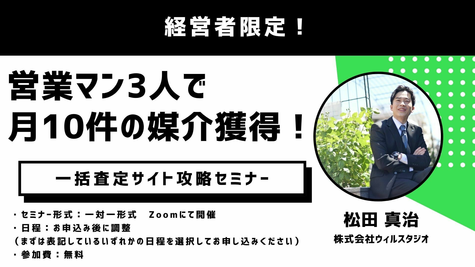 【経営者限定!】営業マン3人で月10件の媒介!一括査定サイト攻略セミナー