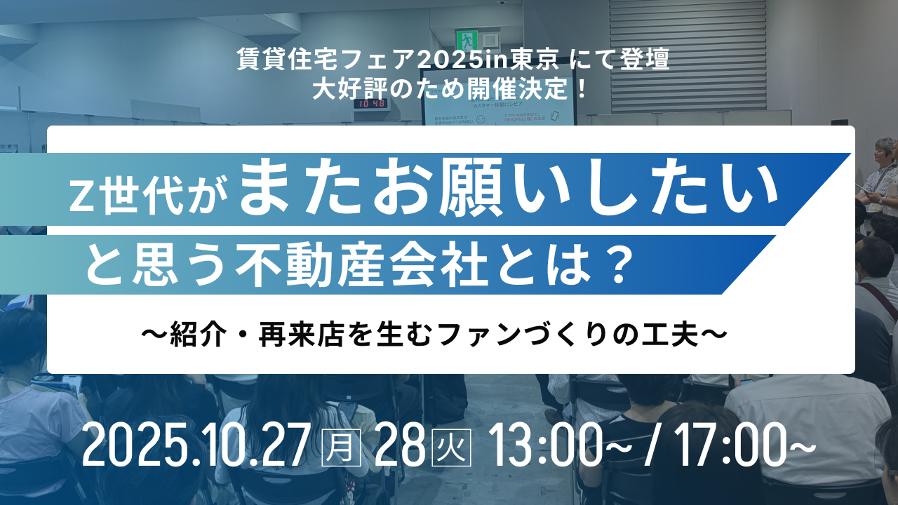 本セミナーでは、賃貸仲介・管理の現場で実際に成果を上げている企業の事例をもとに、Z世代から選ばれ続けるためのコミュニケーション設計やリピーター戦略を徹底解説します。