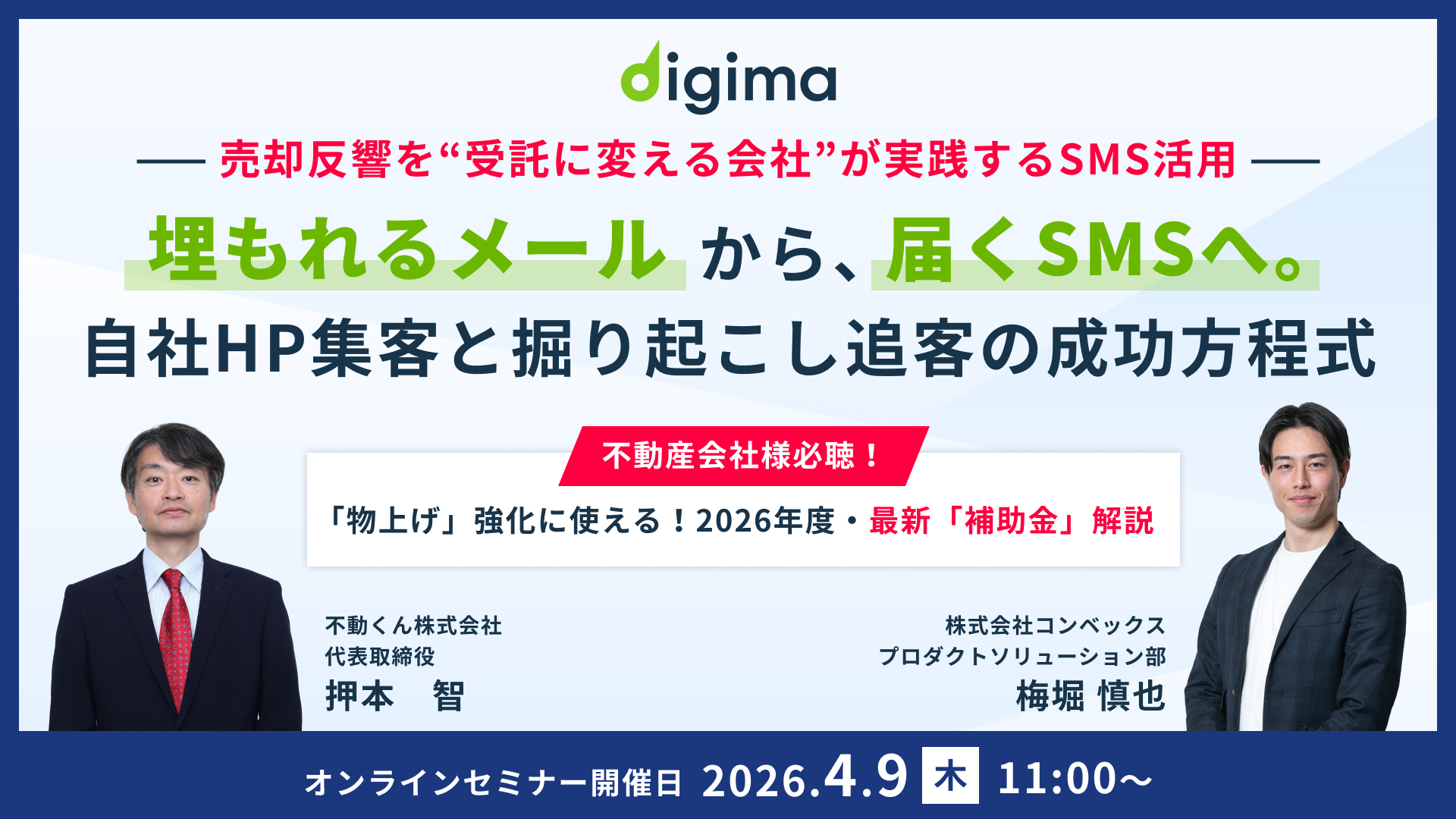 本セミナーでは、自社HPによる反響獲得から、SMSを活用した追客設計までを一気通貫で解説。