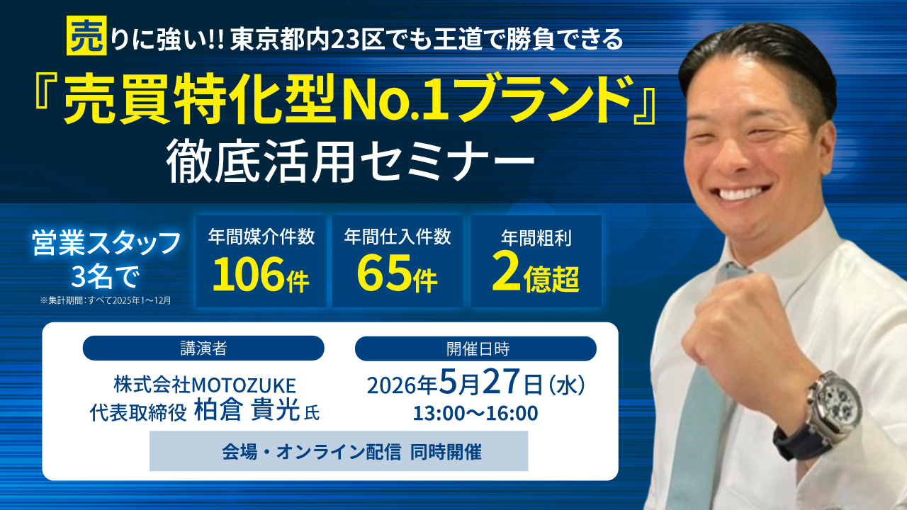 東京都内23区でも王道で勝負できる『売買特化型No.1ブランド』徹底活用セミナー!!